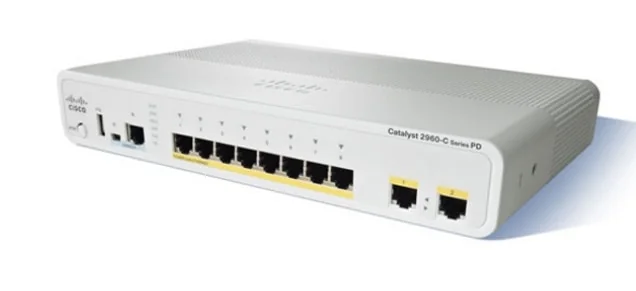 Cisco Catalyst 2960C-8TC-L は、配線盤外への設置に最適化されたコンパクト ファンレス スイッチです。